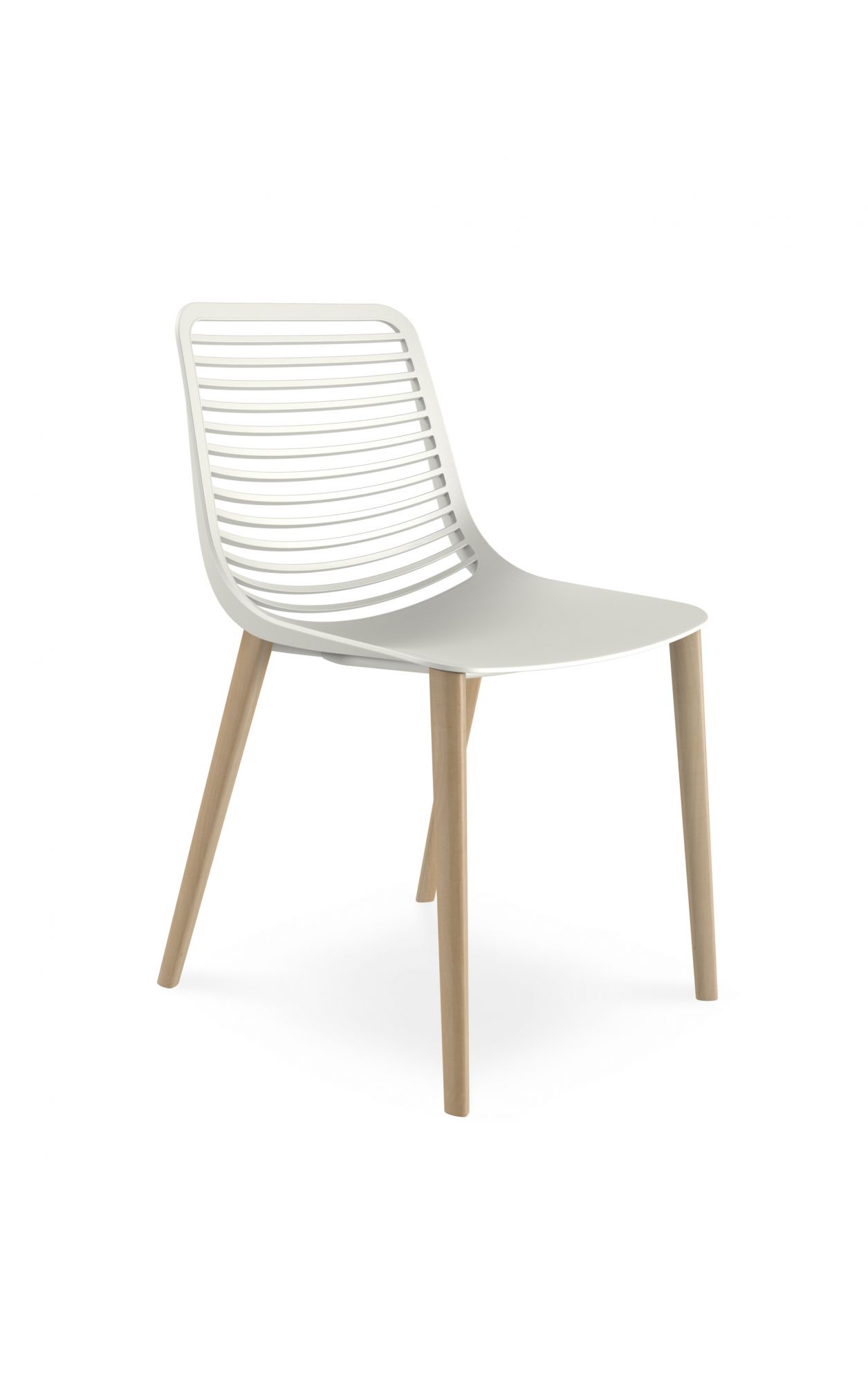 Les fines lamelles du dossier de la chaise Mini apportent de la légèreté à cette chaise au style raffiné.